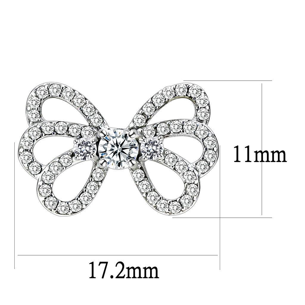 DA067 - High polished (no plating) Stainless Steel Earrings with AAA Grade CZ in Clear