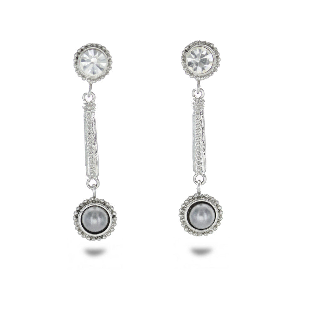 These stunning clear colored crystal earrings are composed from silver tone plated alloy and brilliant round top grade crystals. Wear these stunning earrings with your work attire or LBD for a dramatic effect.